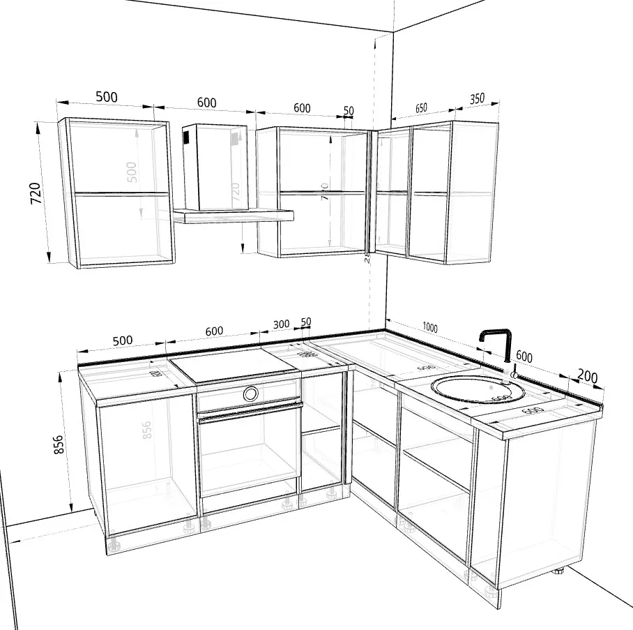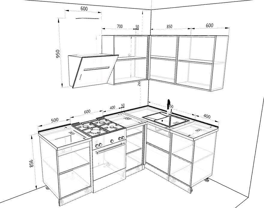 • Глубина нижнего корпуса 500 мм Удобные кухни