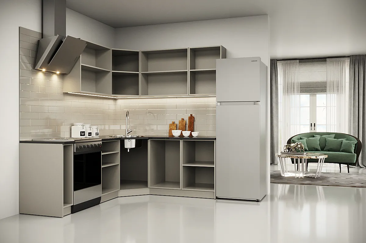 Модульные кухни - это готовые решения в наличии на нашем складе, которые состоят из отдельных корпусов разных размеров, а так же фасадов разных цветов и фактур. Из этого множества компонентов вам необходимо выбрать те модули, которые подойдут вам по размеру и дизайну или воспользоваться услугами нашего замерщика.